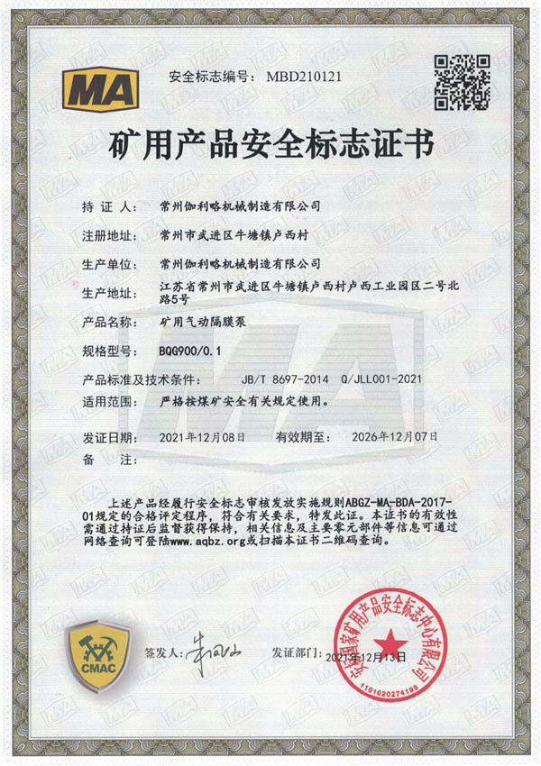 • 礦用安全標志證書-BQG900/0.1