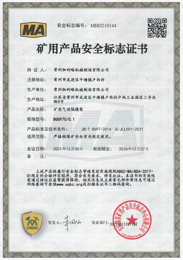 • 礦用安全標志證書-BQG970/0.1